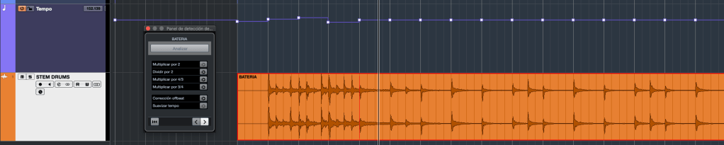 La herramienta de Detección de tempo es útil cuando tenemos pistas de batería o percusión con ritmos claros y definidos, y tiene dos aplicaciones prácticas: