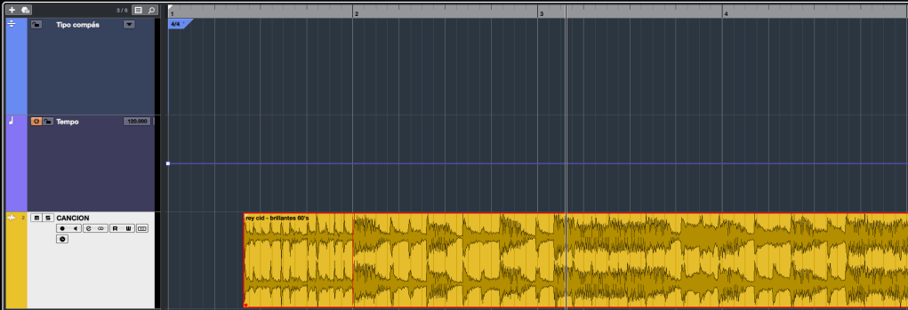 - Importamos la canción cuyo tempo queremos averiguar y la insertamos en la pista de un proyecto, como en la imagen inferior.