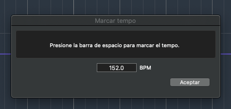 Al presionarlo se abrirá una nueva ventana que nos indica que debemos presionar la barra espaciadora de nuestro teclado para marcar el pulso de la idea musical o rítmica que tenemos en mente. Al hacerlo el cuadro inferior BPM se actualiza constantemente según la velocidad con la que presionamos la barra espaciadora.