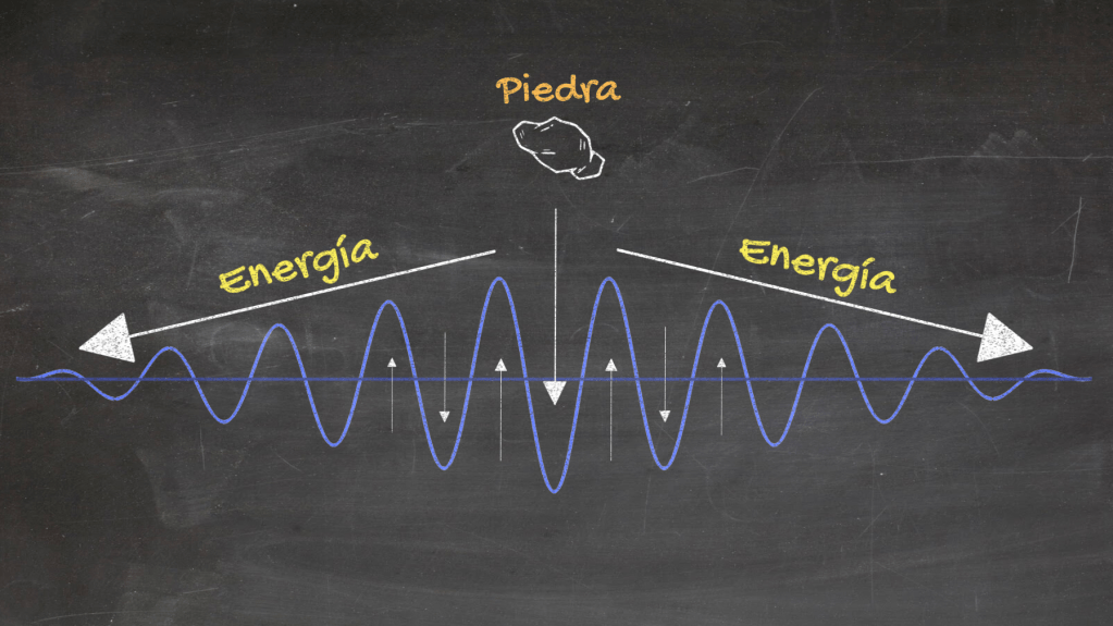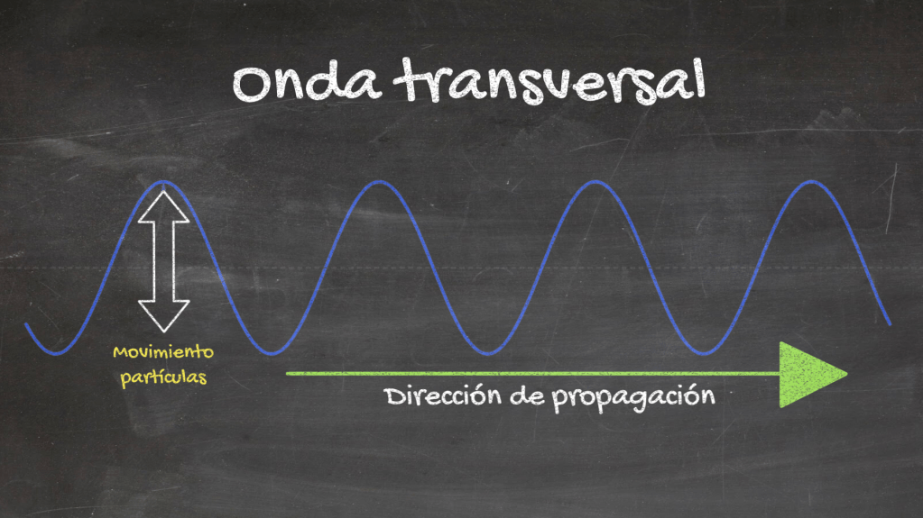 El fenómeno que acabamos de describir para el agua se conoce como onda transversal: una onda en la que sus partículas se mueven de forma perpendicular a la dirección de propagación de la onda.