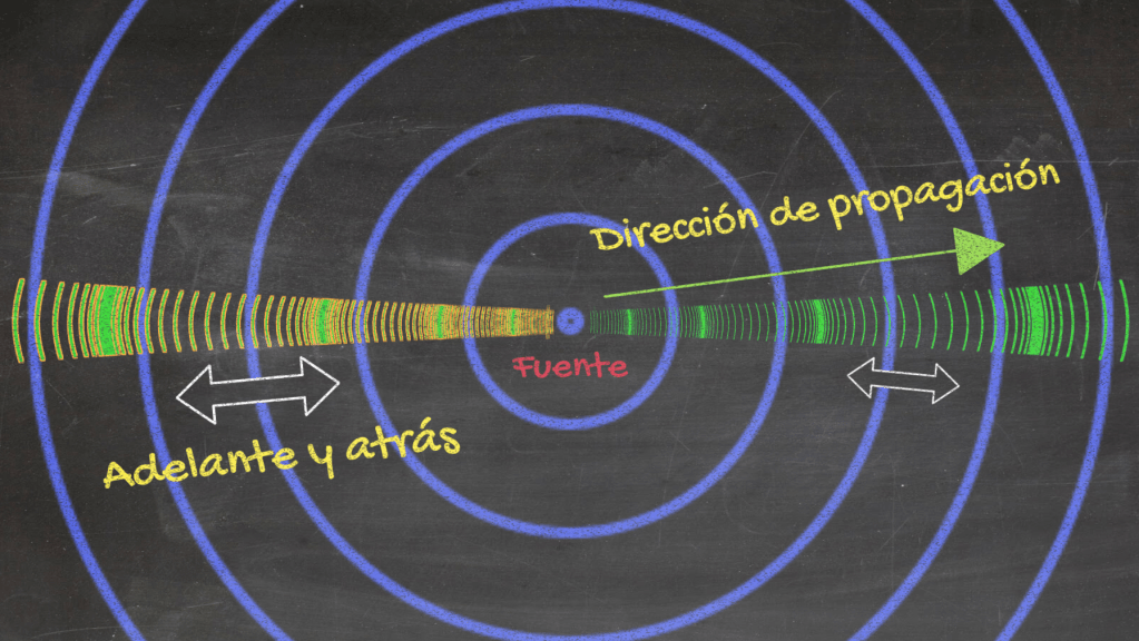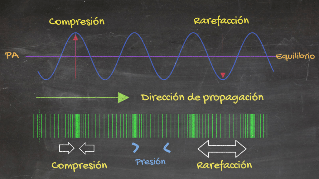 Este patrón de compresión y rarefacción se repite en directa proporción y en la misma dirección de propagación que la onda vibratoria. Es decir, las moléculas de aire se aprietan y expanden en la misma dirección en la que viaja la onda de sonido. Esto es lo que conocemos como onda longitudinal.